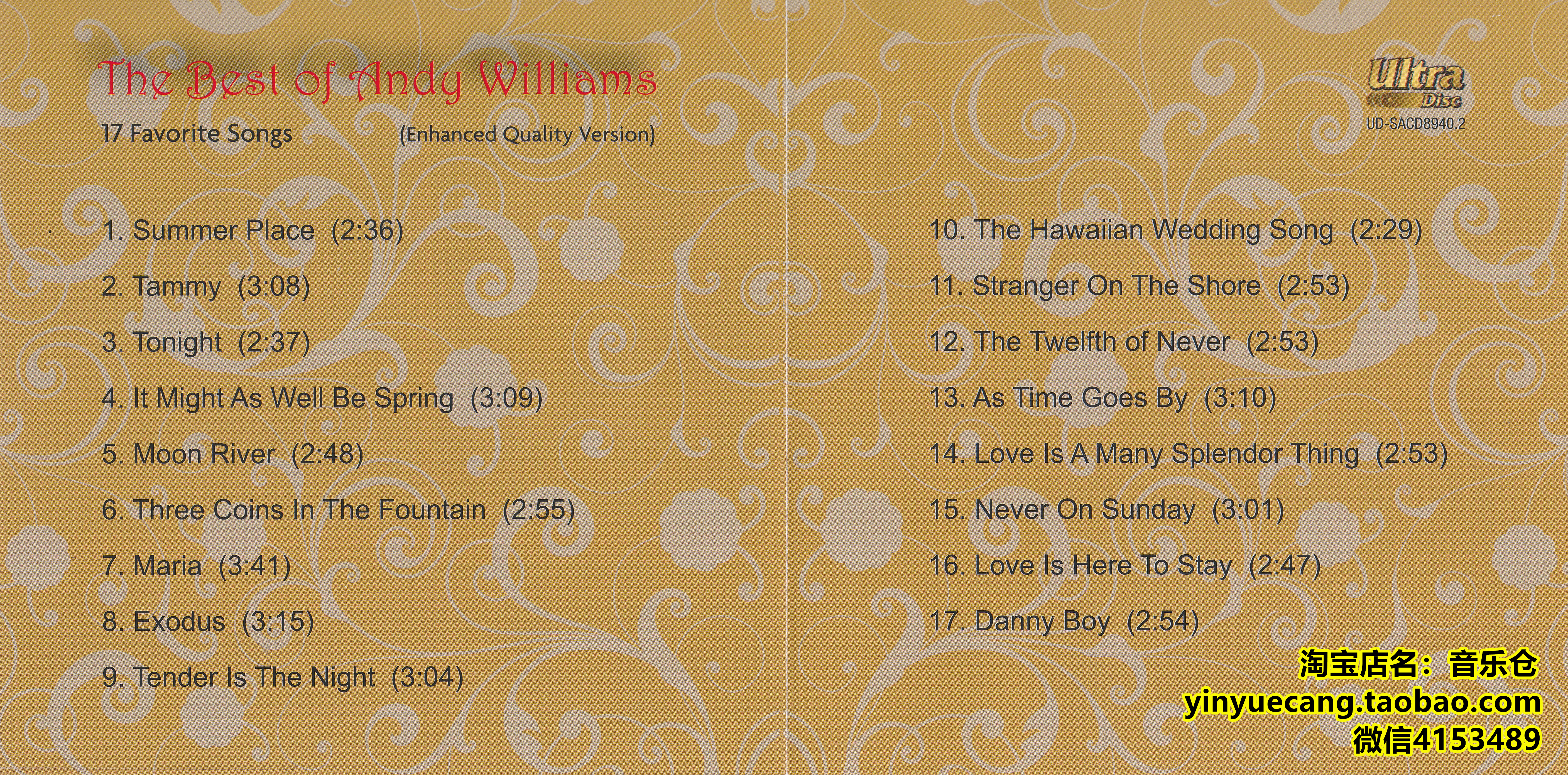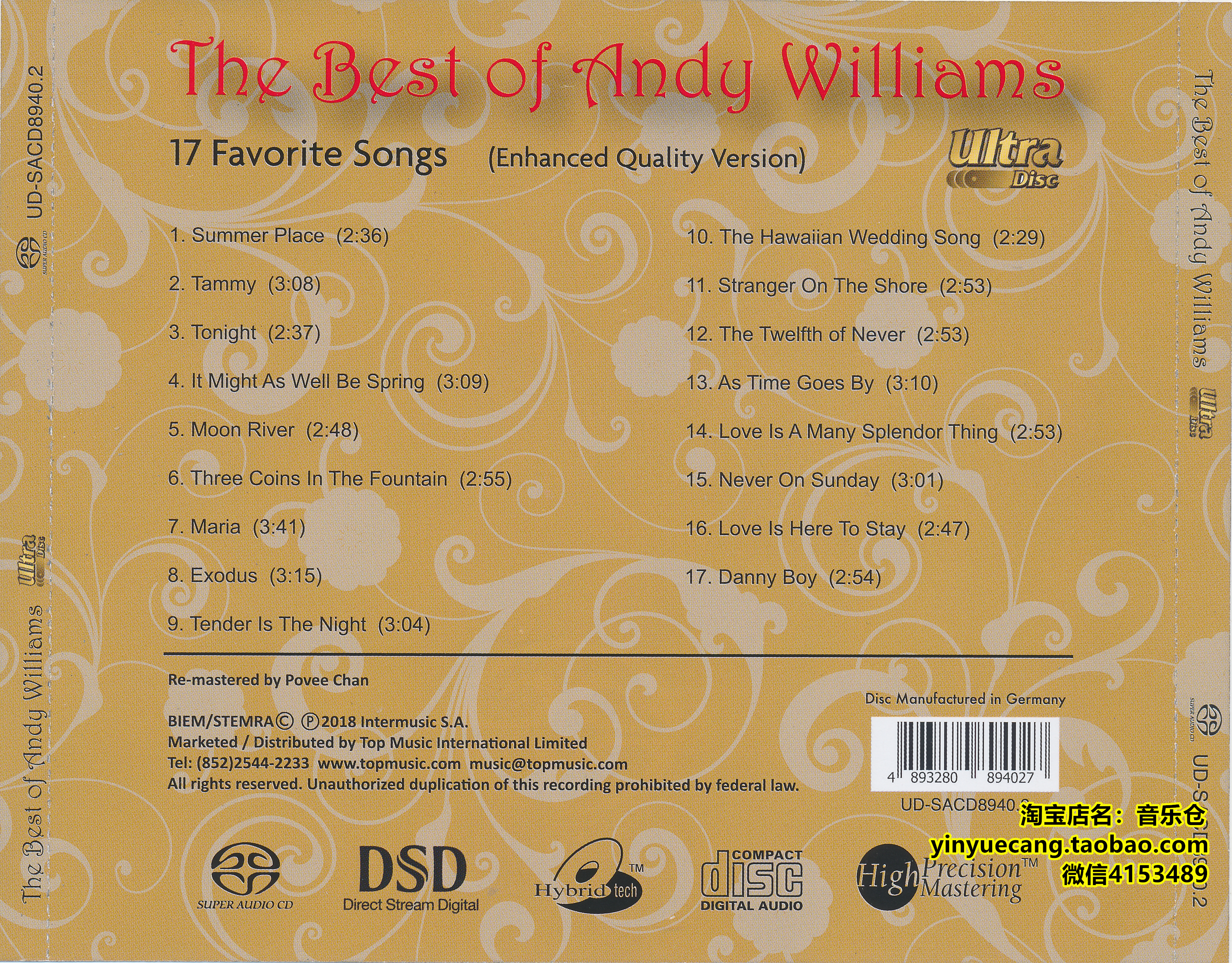 Index of /mnt/media_rw/68BA0A40BA0A0B70/唱片公司合集/TopMusic/Best of Andy Williams(TopMusic UD-SACD8940.2 DSF 安迪·威廉斯经典情歌 流行男声)